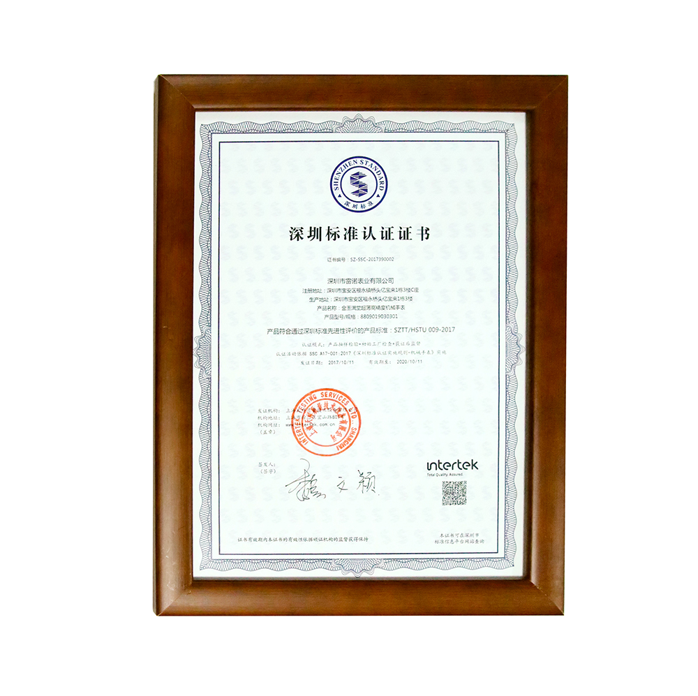 深圳標準是推動深圳高速發展的根基,同時推進深圳企業向更有效益、更高質量的方向發展。是先進技術、高端產品、卓越管理和優質服務的品牌象征。雷諾表業自創建以來,堅持讓質量走在生產前端,把質量放在第一位,不盲目追求速度和規模并在員工中推行工匠精神。
