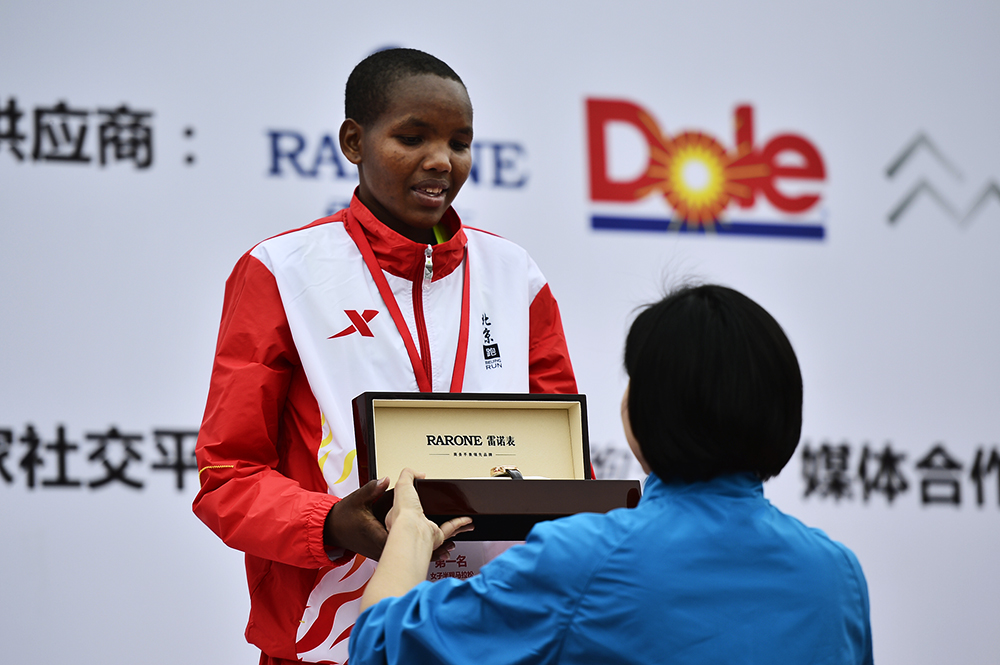坦桑尼亞選手Sisilia Ginoka以1小時15分21秒摘得女子組第一,中國選手馬玉貴、羅川分別以1小時15分36秒和1小時18分07秒分列二三名。 男女冠亞季軍分別獲得由雷諾表送出的運(yùn)動機(jī)械表等多款設(shè)計獨(dú)特的手表,繼續(xù)記錄他們賽場外的精彩每一刻。