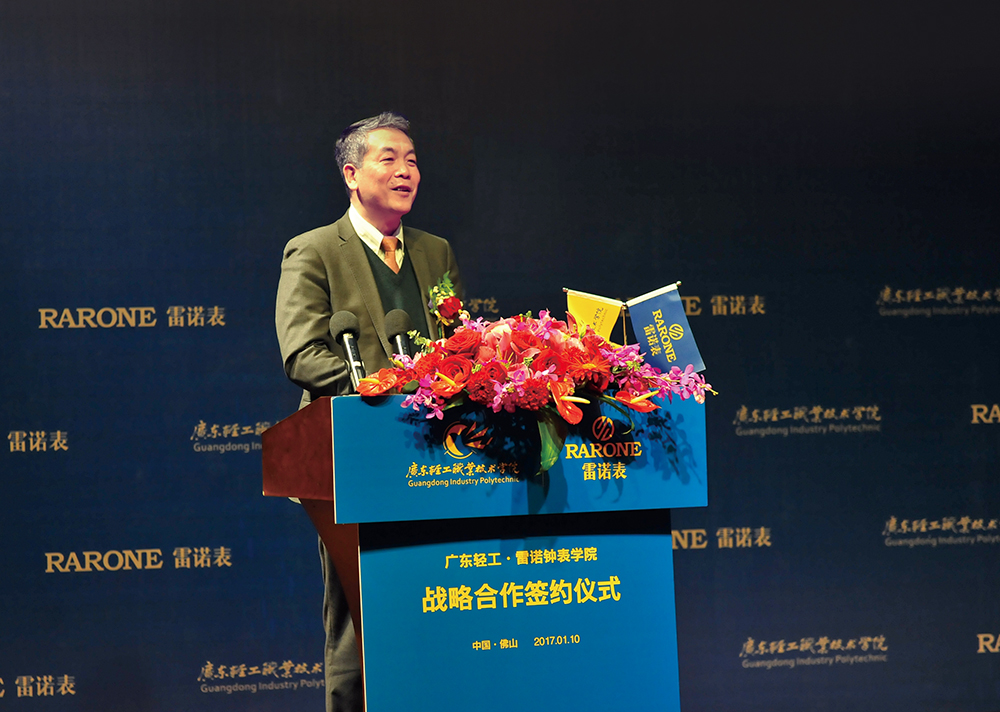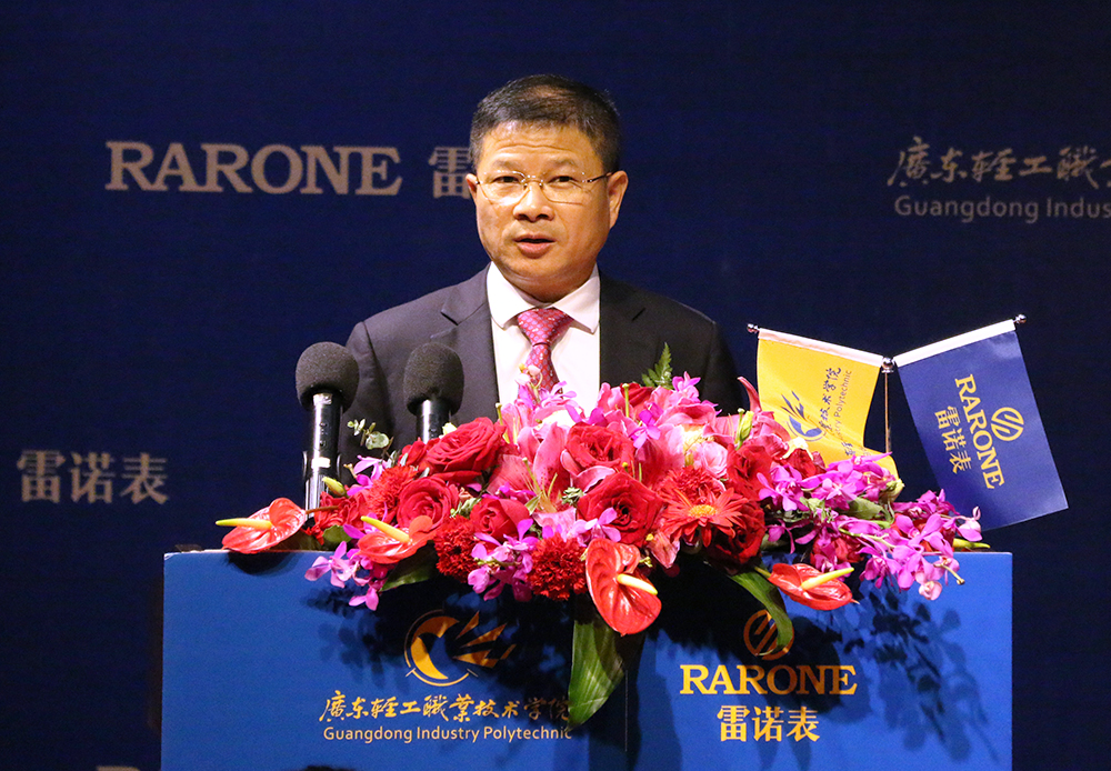 活動當天,校方、協會代表以及企業代表就創新校企鐘表專業共建、人才培養模式改革發表了重要講話。 作為本次校企合作的企業代表,雷諾表業董事長詹西洲先生在大會上表示:“本次校企合作,雷諾表業將最大力度發揮企業作用,參與到鐘表技術人才培養的全過程,實現校企協同育人,并通過產教融合、工學交替、資源共享、信息互通,推進多領域、多層次、多形式合作,達到校企全面推進高精人才培養與經濟發展的契合度和辦學水平。”